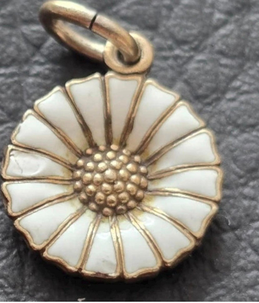 Denmark Georg Jensen 925 Sterling Silver Enamelled Daisy Pendant 11mm minor damage