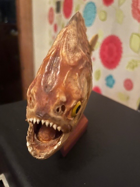 Vintage Taxidermy Piranha Mounted On A Wooden Base Brazil