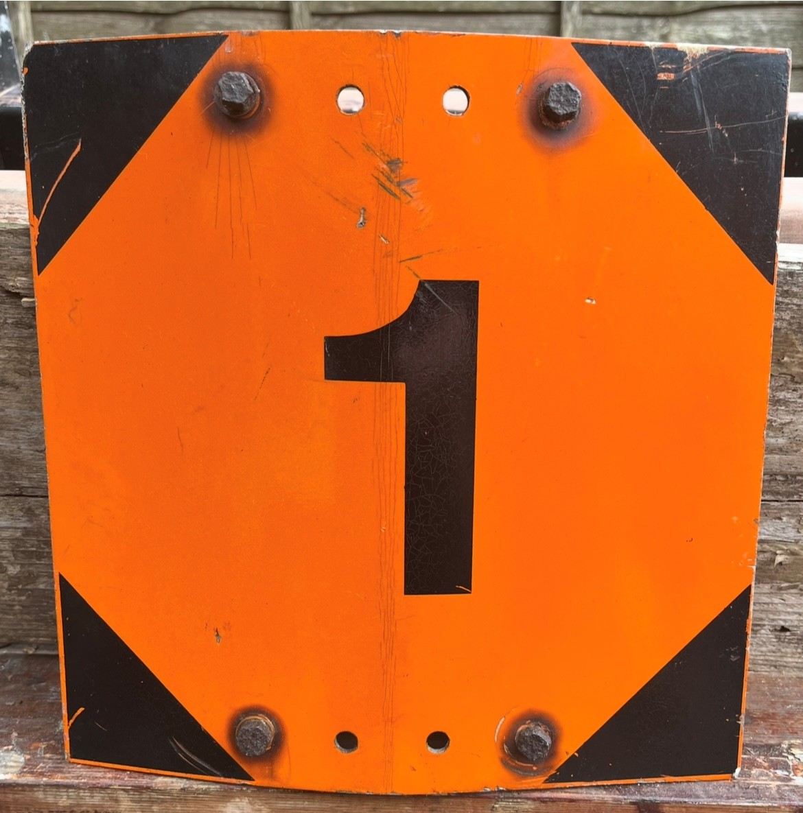 Vintageq Military No. 1 Store Sign Danger Orange Weathered With Some Surface Rust – Post Fixings – Mancave Approx 12” x 12”